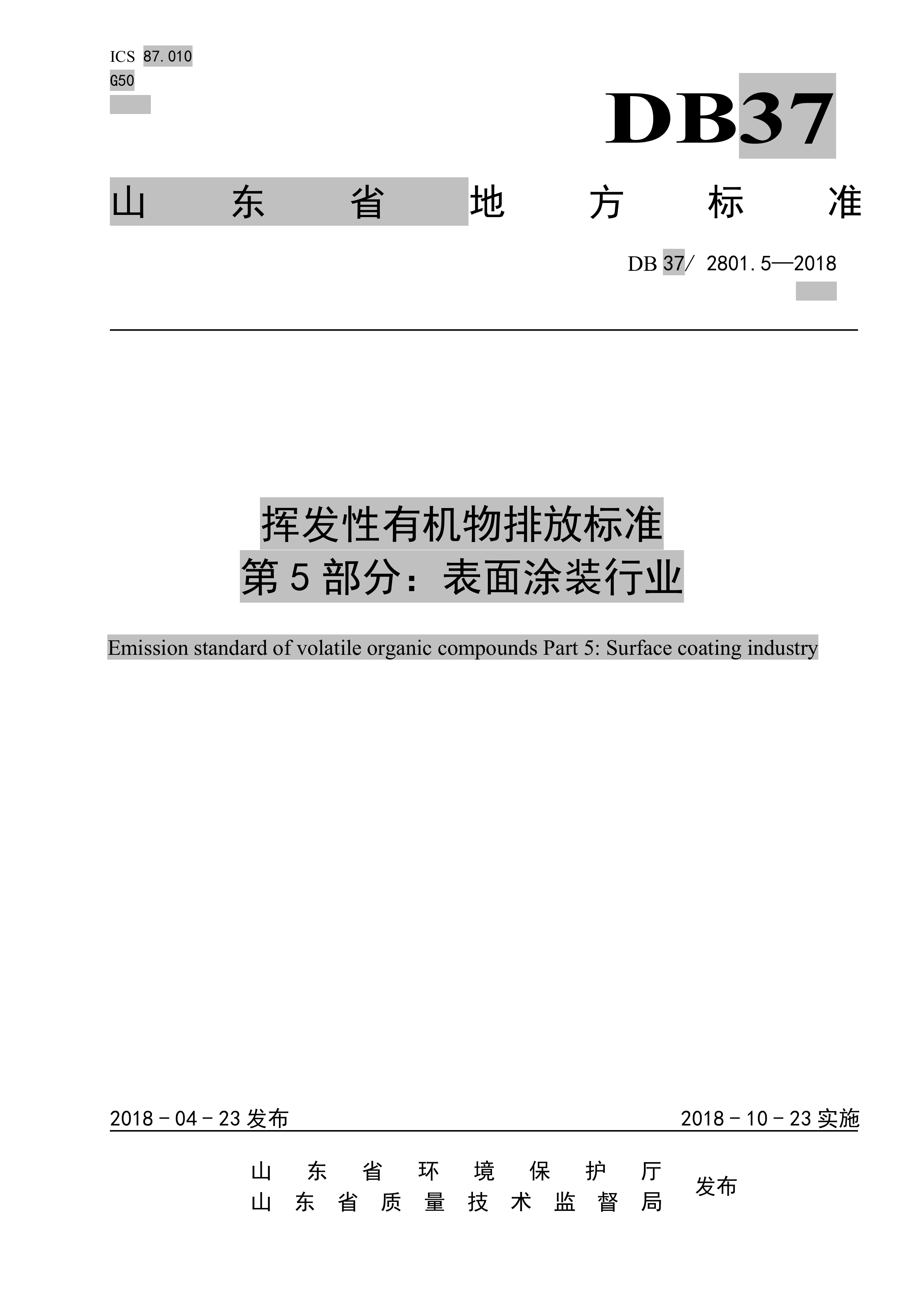 近期,山東省環(huán)保廳和省質(zhì)監(jiān)局聯(lián)合發(fā)布了《揮發(fā)性有機(jī)物排放標(biāo)準(zhǔn) 第5部分:表面涂裝行業(yè)》(DB37/ 2801.5-2018),經(jīng)路博環(huán)保整理詳情如下: