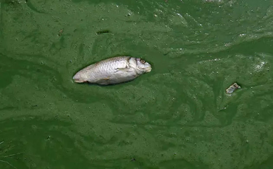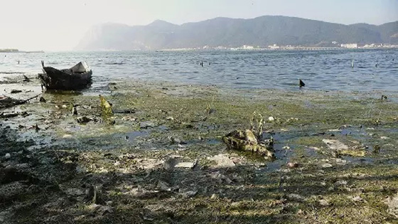 富營養(yǎng)化是指因水體中N、P等植物必需的礦質(zhì)元素含量過多而使水質(zhì)惡化的現(xiàn)象。水體中含有適量的N、P等礦質(zhì)元素,這是藻類植物生長發(fā)育所必需的。但是,如果這些礦質(zhì)元素大量地進(jìn)入水體,就會(huì)使藻類植物和其他浮游生物大量繁殖。這些生物死亡以后,先被需氧微生物分解,使水體中溶解氧的含量明顯減少。接著,生物遺體又會(huì)被厭氧微生物分解,產(chǎn)生出硫化氫、甲烷等有毒物質(zhì),致使魚類和其他水生生物大量死亡。發(fā)生富營養(yǎng)化的湖泊、海灣等流動(dòng)緩慢的水體,因浮游生物種類的不同而呈現(xiàn)出藍(lán)、紅、褐等顏色。富營養(yǎng)化發(fā)生在池塘和湖泊中叫做“水華”,發(fā)生在海水中叫做“赤潮”。工業(yè)廢水、生活污水和農(nóng)田排出的水中含有很多N、P等植物必需的礦質(zhì)元素,這些植物必需的礦質(zhì)元素大量地排到池塘和湖泊中,會(huì)使池塘和湖泊出現(xiàn)富營養(yǎng)化現(xiàn)象。池塘和湖泊的富營養(yǎng)化不僅影響水產(chǎn)養(yǎng)殖業(yè),而且會(huì)使水中含有亞硝酸鹽等致癌物質(zhì),嚴(yán)重地影響人畜的安全飲水。