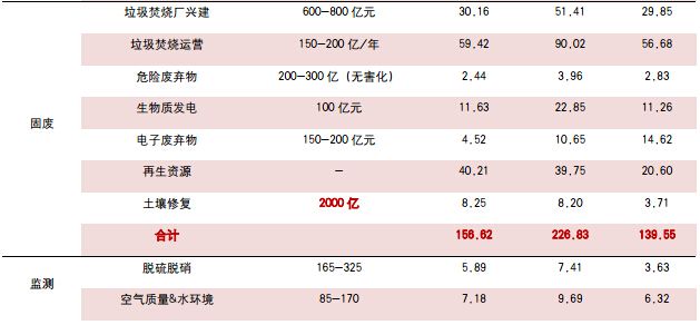 為了分析我們觀察的環(huán)保上市公司所在行業(yè)增速情況,我們狹義的將我們所圈定的一些領(lǐng)域集合固化為環(huán)保產(chǎn)業(yè),分別為:大氣治理(工業(yè)煙氣治理,十三五投資需求1000億元,每年200-300億);水的治理(市政污水處理廠及管網(wǎng)的興建、運營和改造、工業(yè)污水治理、流域水治理、污泥治理,年投入1000億左右);固廢(垃圾填埋、焚燒、餐廚、滲濾液處理、危廢、工業(yè)固廢,1000億規(guī)模);土壤修復(目前年投入50-100億元)。運營產(chǎn)業(yè):大氣(脫硫、脫硝、除塵的運營成本,500-1000億元);污水處理(市政污水的運營、工業(yè)污水的運營,500-600億元);固廢(工業(yè)固廢、危廢,200-300億元)。