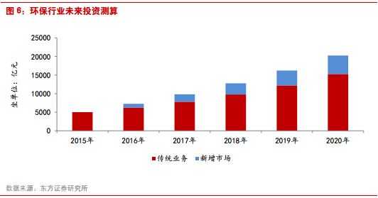 利用我們上市公司業(yè)務(wù)模塊模型來分析,進入治理階段環(huán)保產(chǎn)業(yè)的投資將全面升級:原有減排產(chǎn)業(yè)繼續(xù)保持30%左右的高增長,黑臭水體、海綿城市、土壤修復領(lǐng)域給行業(yè)帶來巨大增量。從我們的測算看,“十三五”,水、氣、固廢三大領(lǐng)域的原有業(yè)務(wù)模式將繼續(xù)保持20-30%的增速,而水環(huán)境、海綿城市、土壤修復將帶動1.5-2萬億的投資,年投入3000-4000億元為環(huán)保投入增量。加上傳統(tǒng)業(yè)務(wù)15年環(huán)保投資體量5000億的基礎(chǔ)上每年保持25%的增長,環(huán)保行業(yè)年投資體量將從4000-5000億上升到1-1.5萬億。因此,綜合治理打開環(huán)保產(chǎn)業(yè)投資空間,未來的大公司將圍繞該領(lǐng)域產(chǎn)生。