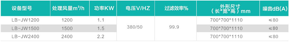 三、LB-JW型焊接煙塵凈化器技術參數(shù)